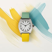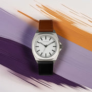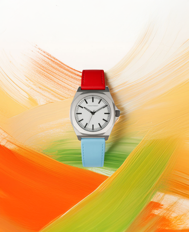 Das helle Zifferblatt bringt Ruhe und Leichtigkeit ins Spiel, während die markante Form für konstruktive Stärke steht.