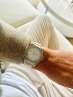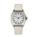 Das helle Zifferblatt bringt Ruhe und Leichtigkeit ins Spiel, während die markante Form für konstruktive Stärke steht.