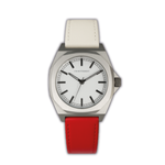 Das helle Zifferblatt bringt Ruhe und Leichtigkeit ins Spiel, während die markante Form für konstruktive Stärke steht.