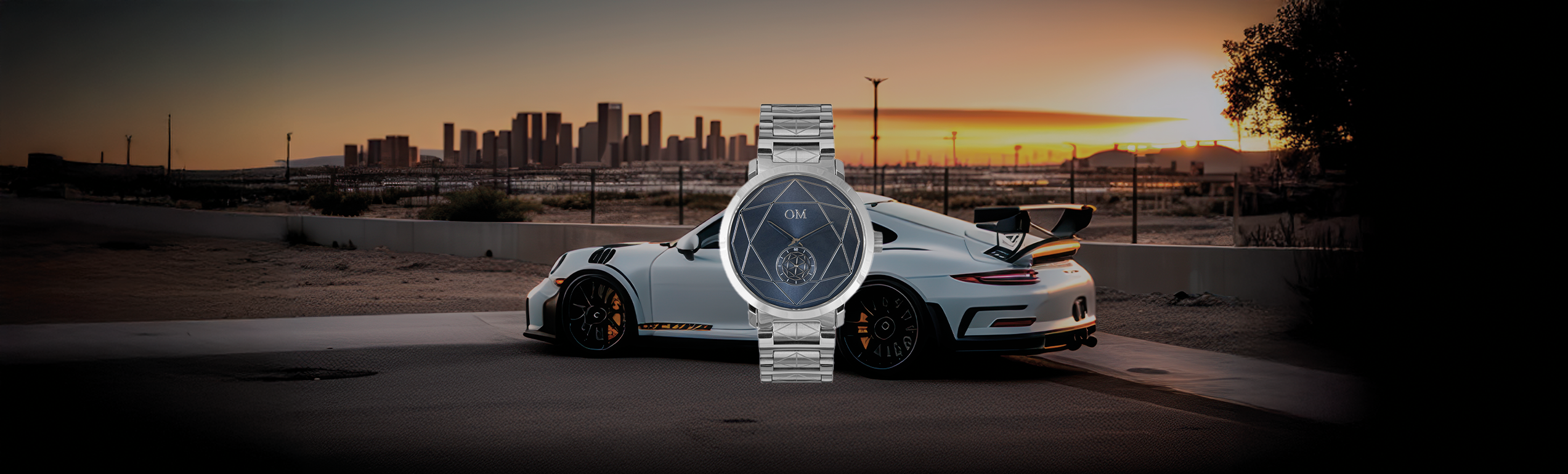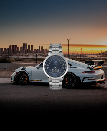 Das markant facettierte Gehäuse der OMVT Uhr besteht aus hochwertigem, gebürstetem Edelstahl und spiegelt moderne Uhrmacherkunst in ihrer reinsten Form wider.