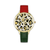 Das runde Gehäuse mit dem hellen Leopardenmuster der OMVT Uhr wird dich in Kombination mit den unterschiedlichen Farbnuancen der edlen Armbänder begeistern.