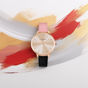 La caja redonda y brillante del reloj OMVT con los diferentes matices de color de las correas te inspirará.