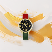 La caja redonda con diseño de leopardo oscuro del reloj OMVT con los diferentes matices de color de las elegantes correas te inspirarán.