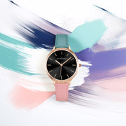 Wähle zwischen einem zarten Lederarmband oder einem glänzenden Edelstahlband – beide Varianten versprechen höchsten Tragekomfort und zeitlose Ästhetik.