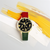Diese exemplarische und exklusive Armbanduhr von OMVT kombiniert ein markantes, gebürstetes Edelstahlgehäuse mit einem außergewöhnlichen zweifarbigen Lederarmband – Olivgrün oben, tiefschwarz unten. Ein Design, das Naturverbundenheit und urbane Klarheit in einem einzigen Statement vereint.